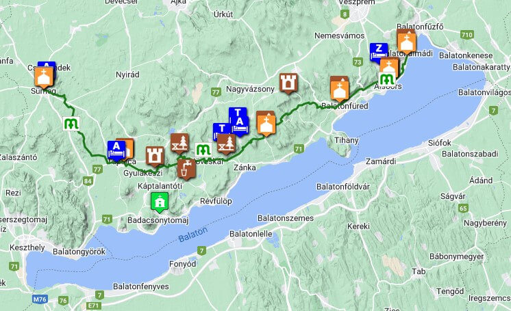 A túra ajánlott időtartama 3 nap, amely során barangolhatunk a Balaton Felvidék történelmi romjai, templomai és egyéb látnivalói között.