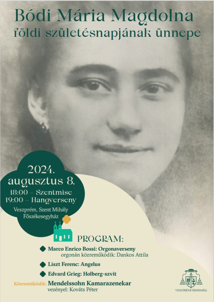 Szentmise és hangverseny Bódi Mária Magdolna születésnapján Istent Tiszteletreméltó Szolgálója Bódi Mária Magdolna földi születésnapjának ünnepén a Szent Mihály Főszékesegyházba várunk mindenkit szeretettel augusztus 8-án 18:00 szentmise, 19:00 hangverseny Műsoron: […]